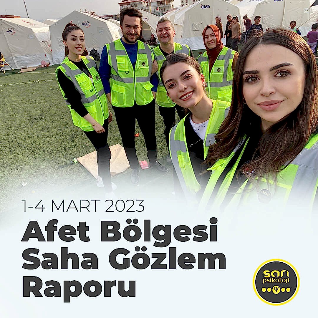 Sarı Psikoloji Psikososyal Destek Ekibimiz ile depremden 3 hafta sonra 01.03.2023-04.03.2023 tarihleri arasında Gaziantep ve Kahramanmaraş bölgesinde depremin etkilerini gözlemlemek, yapılması gerekenleri tespit etmek ve koordinasyonu sağlamak amacıyla ziyaretlerimiz yapılmıştır. Çalışmalarımız ve ziyaretlerimiz sırasında gözlemlerimizi kamuoyuyla paylaşıyoruz.