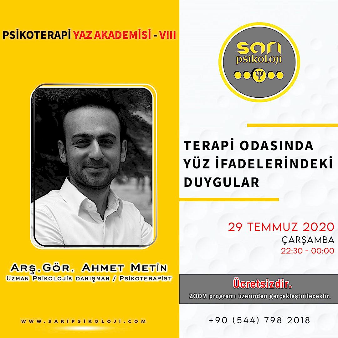 29 Temmuz Çarşamba günü 22:30 ‘da Arş. Gör. Uzman Psikolojik Danışman / Psikodanışman Ahmet Metin tarafından gerçekleşecek “Danışmanlığı Odasında Yüz İfadelerindeki Duygular” programı için kayıtlarımız programdan 1 gün önce açılacaktır. Kayıtlar kapanmadan yerinizi almayı unutmayın.