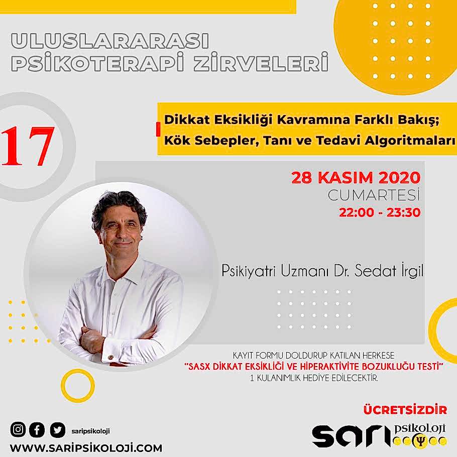 Bu kapsamda 28 Kasım 2020 Cumartesi günü 22:00 ‘da Psikiyatri Uzmanı Dr. Sedat İrgil tarafından gerçekleşecek “Dikkat Eksikliği Kavramına Farklı Bakış;Kök Sebepler, Tanı ve Tedavi Algoritmaları’’ programı için kayıtlarımız programdan 1 gün önce açılacaktır. Kayıtlar kapanmadan yerinizi almayı unutmayın.