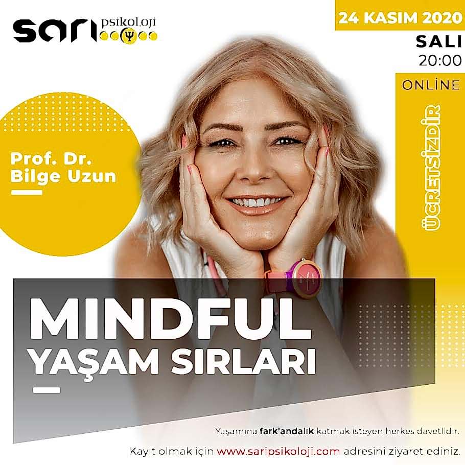 Prof. Dr. Bilge Uzun tarafından 24.11.2020 Salı 20:00 ‘da ‘’MINDFUL YAŞAM SIRLARI’’ programı ile sizlerle birlikte olacağız. Program ÜCRETSİZ olup ‘’ZOOM’’ programı üzerinden gerçekleşecektir.