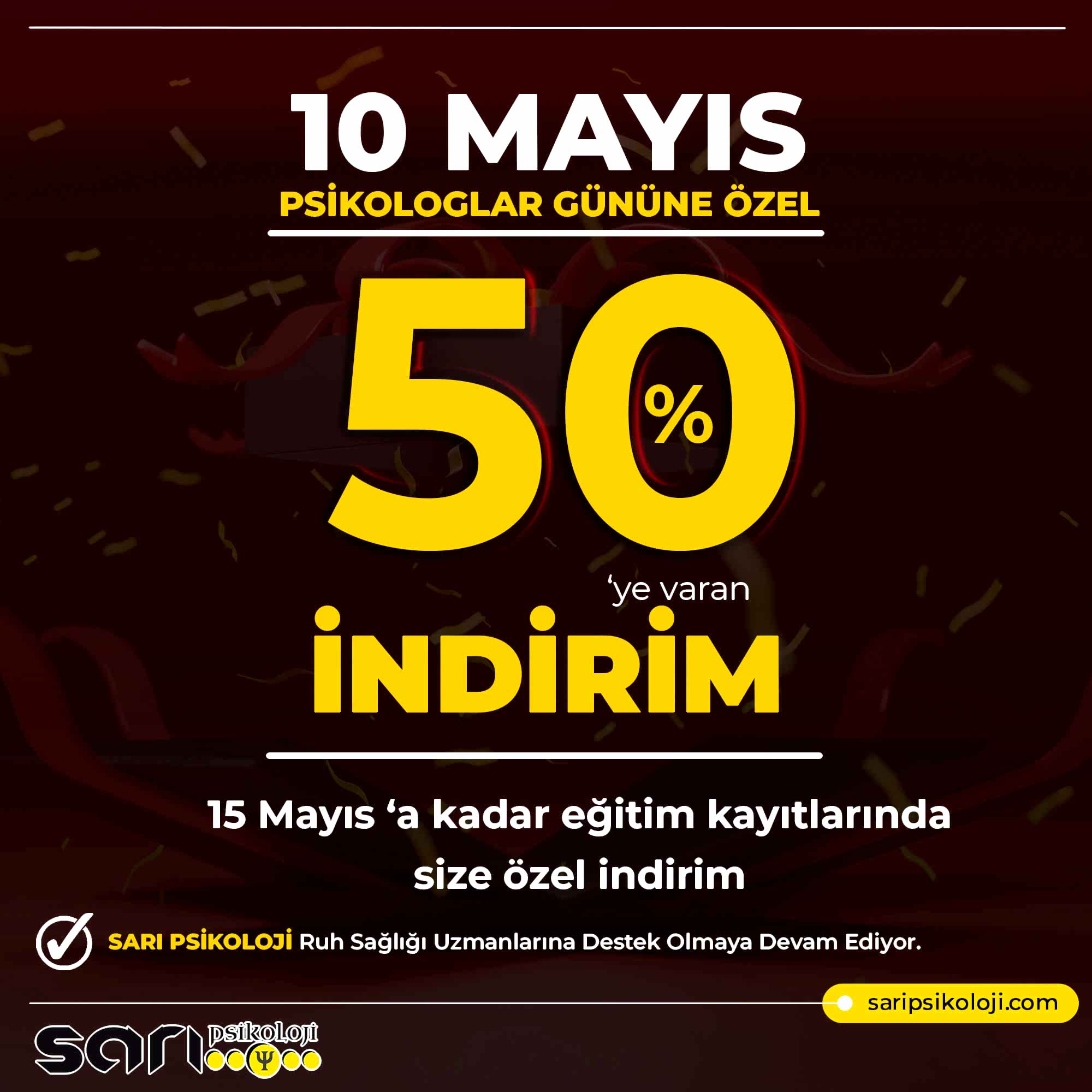Her günün ayrı bir anlam ve önemi olduğunu düşünerek 10 Mayıs içinde Psikologlarımızın mesleki gelişimlerine destek olmak için eğitim programlarımızda çeşitli indirimler tanımladık.