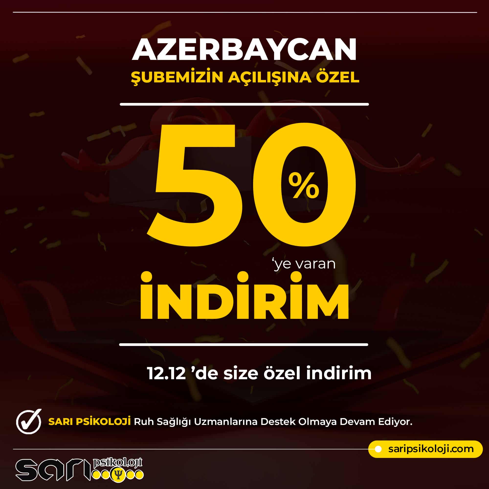 Her geçen gün büyüyen yapısıyla Sarı Psikoloji, Azerbaycan 'da açtığımız şubenin açılma mutluluğunu sizlerle paylaşmak istedik. Linkte bulunan ankete katılarak size özel eğitimlerimizden herhangi birinde %50 'ye varan indirim hakkı elde etmiş olacaksınız.