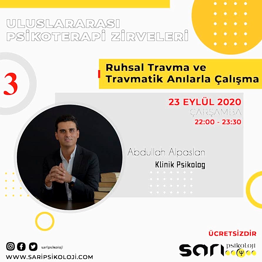 Bu kapsamda 23 Eylül 2020 Çarşamba günü 22:00 ‘da Klinik Psikolog Abdullah Alpaslan tarafından gerçekleşecek “Ruhsal Travma ve Travmatik Anılarla Çalışma” programı için kayıtlarımız programdan 1 gün önce açılacaktır. Kayıtlar kapanmadan yerinizi almayı unutmayın.