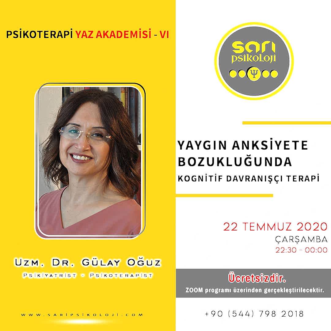 22 Temmuz Çarşamba günü 22:30 ‘da Uzm. Dr. / Psikiyatrist Gülay Oğuz tarafından gerçekleşecek “Yaygın Anksiyete Bozukluğunda Kognitif Davranışçı Danışmanlığı” programı için kayıtlarımız programdan 1 gün önce açılacaktır. Kayıtlar kapanmadan yerinizi almayı unutmayın.